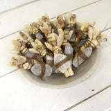 Each one is wrapped in vintage yarn that is purchased from a local non-profit which sells vintage and deadstock sewing and crafting materials, where proceeds go back to the community, providing sewing and textile-based classes, as well as job training.