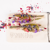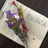 INGREDIENTS: 100% certified organic, Cali grown sage + wild flowers tied with hemp string. Comes in a hand-stamped muslin bag.