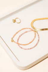 Petite beaded gemstone bracelet with 14K gold plated hardware. Choose a stone and meaning that calls to you and set your intentions into the bracelet. Wear it with an abundance of love and happiness. Lapis Lazuli - Power/Vision Malachite - Transformation/Courage Watermelon Tourmaline - Adventurous/Happiness Black Obsidian - Cleanse/Grounding Sunstone - Joyful/Good Fortune Rose Quartz - Unconditional self-love/Harmony Strawberry Quartz - Connection/Healing Amethyst - Balancing/Tranquility Disclaimer: Hardware is 14K gold plated over stainless steel and is a little darker in color from our previous hardware. The hardware should not tarnish, but to preserve the life of the gold plating, it is highly suggested to minimize exposure to water, sweat, chemicals such as perfumes, lotions and soap, and direct sunlight. Measurement: 6.5"